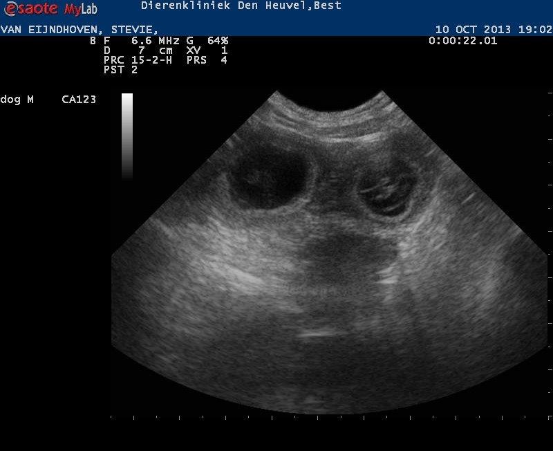 Eindelijk...tijd voor de echo! YES!!!! Ze is drachtig. Rond 17 november worden verwachten we pups.