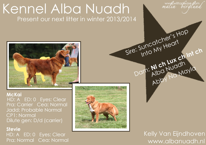 Mayla is JADD vrij getest. Daarmee zijn alle ALba Nuadh puppies