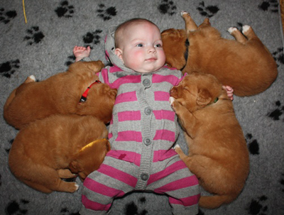 our living room and play with the other dogs. They also have their first