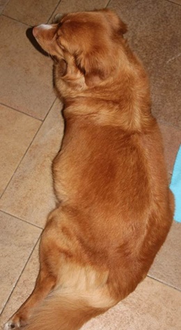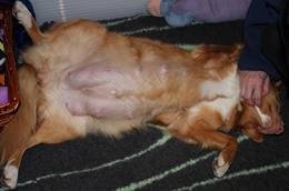 7 October 2015 | Update of our pregnant Gwenny. She is 6 weeks pregnant. She is doing great. She still goes along with all the walks, even the if it takes 1,5 hours. She is getting a big belly and we think she will have some heavy weeks in front of her. Her belly is now 71 cm, weight 20,4 kg.